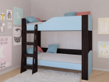 Кровать двухъярусная "Астра 2" без ящика, венге/голубой