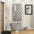 Прихожая «Мишель 750» создаст неповторимый интерьер в прихожей комнате. Обивка -качественный велюр. Вешалка снабжена тремя рожковыми крючками для одежды. В основе конструкции плита МДФ толщиной 10 мм., наполнитель ППУ. Пуф с мягким сиденьем и ящиком для хранения. Каркас из ЛДСП толщиной 16 мм., наполнитель ППУ.