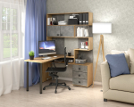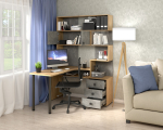 Компьютерный стол «СК-10» отличается большой рабочей поверхностью, есть три вместительных ящика, просторные открытые полки над столом для бумаг, книг и всегда нужных мелочей, и закрытые полки для документов.