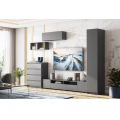 Тумба под ТВ из модульной серии «Денвер» в цвете «графит» дополнит гостиную в сочетании со шкафами и навесными полками или навесными шкафами, на выбор.